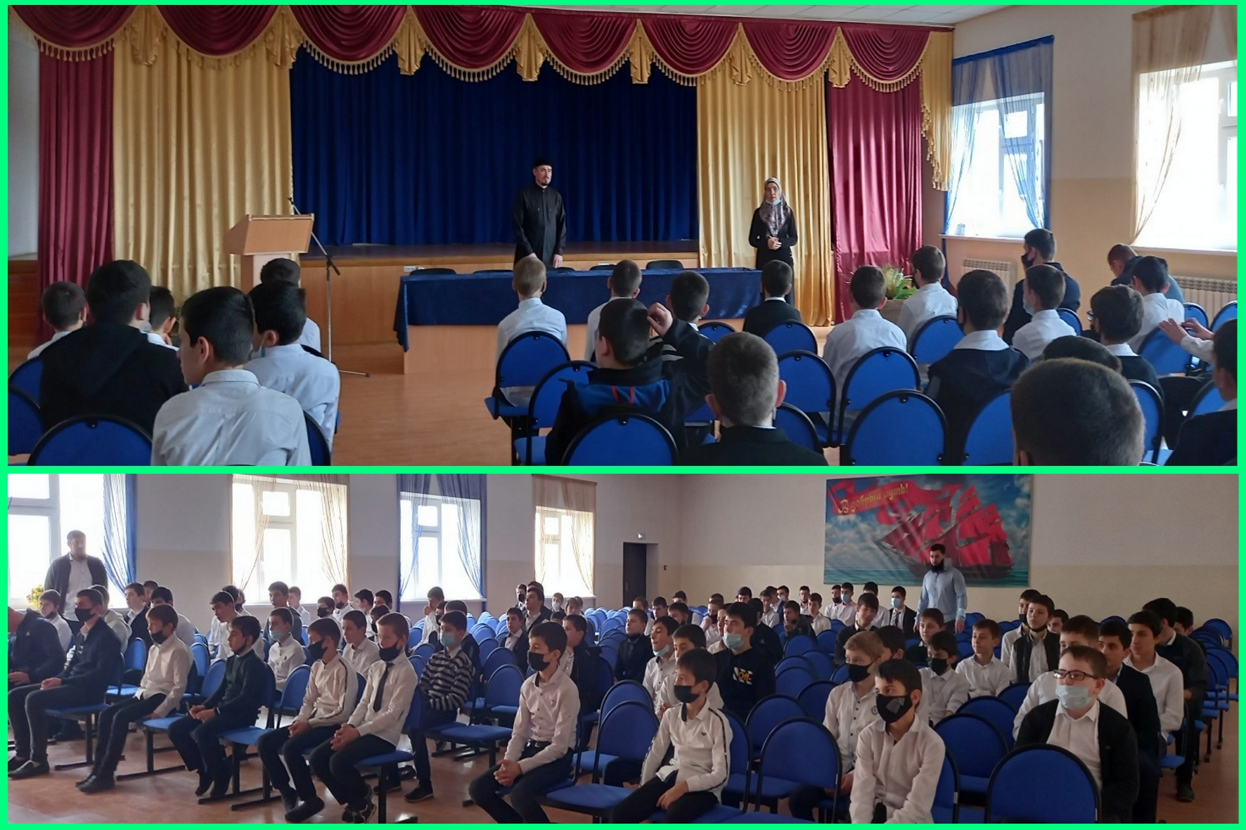 06.02.2021В рамках реализации ЕК по духовно-нравственному воспитанию и развитию подрастающего поколения и в целях развития и формирования чувства патриотизма и уважения традиций чеченского народа, в МБОУ «СОШ№4с.Катар-Юрт» , 6.02.2021 года, состоялась встреча учащихся 5-11 классов с богословом Бергоевым С.А. Он провел беседа на тему: «Традиции и обычаи чеченского народа».