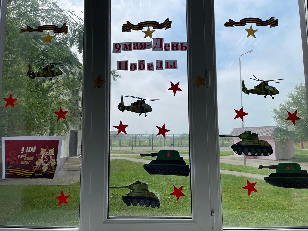 Так же ребята приняли активное участие в акции «Окна Победы», они украсили окна в классах и в фойе школы рисунками, посвященными Дню Победы.